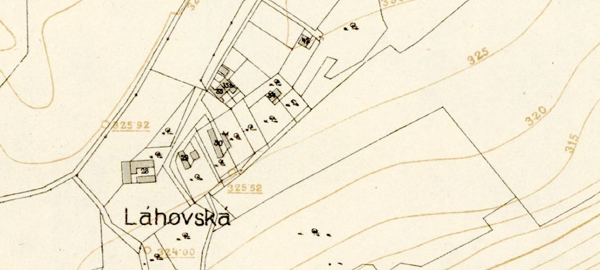Před 130 lety, roku 1896, byla Lahovská malou osadou nad Radotínem o pouhých osmi číslech popisných. Vznikla jen o pár desítek let dříve - na počátku 19. století, někdy v době, kdy kníže Oettingen-Wallerstein zakoupil zbraslavské panství. Tehdy dal lahovický statek na zdejším návrší v polích postavit usedlost (od něj i název osady) a ve svahu hájovnu – domek pro hlídače ovocných sadů na jihovýchodní stráni – lidově známých jako "knížecí višňovka". Usedlost nesla později čp. 28 a hospodařil na ní rod Bláhů. Za nějaký čas kolem ní vyrostlo pár malých domků. Čtyři na katastru Radotína, čtyři na katastru Velké Chuchle, které se tu dotýkaly. Až roku 1922 byla celá Lahovská připojena k Radotínu.